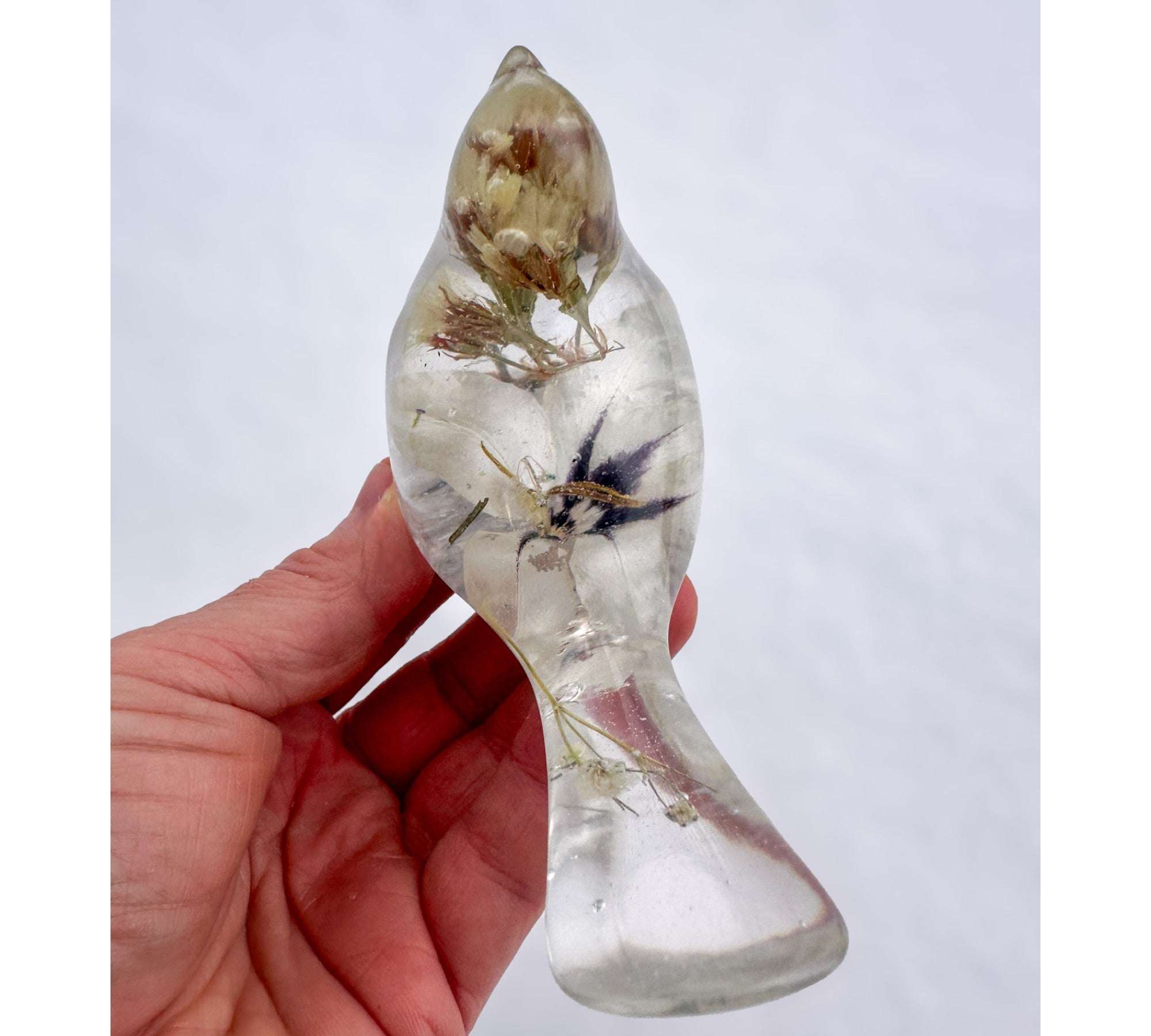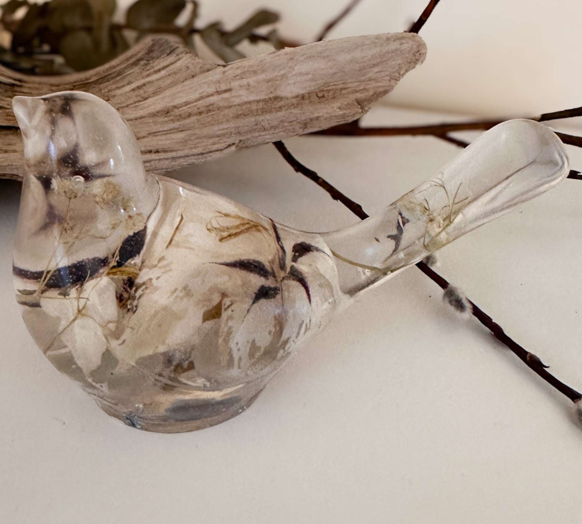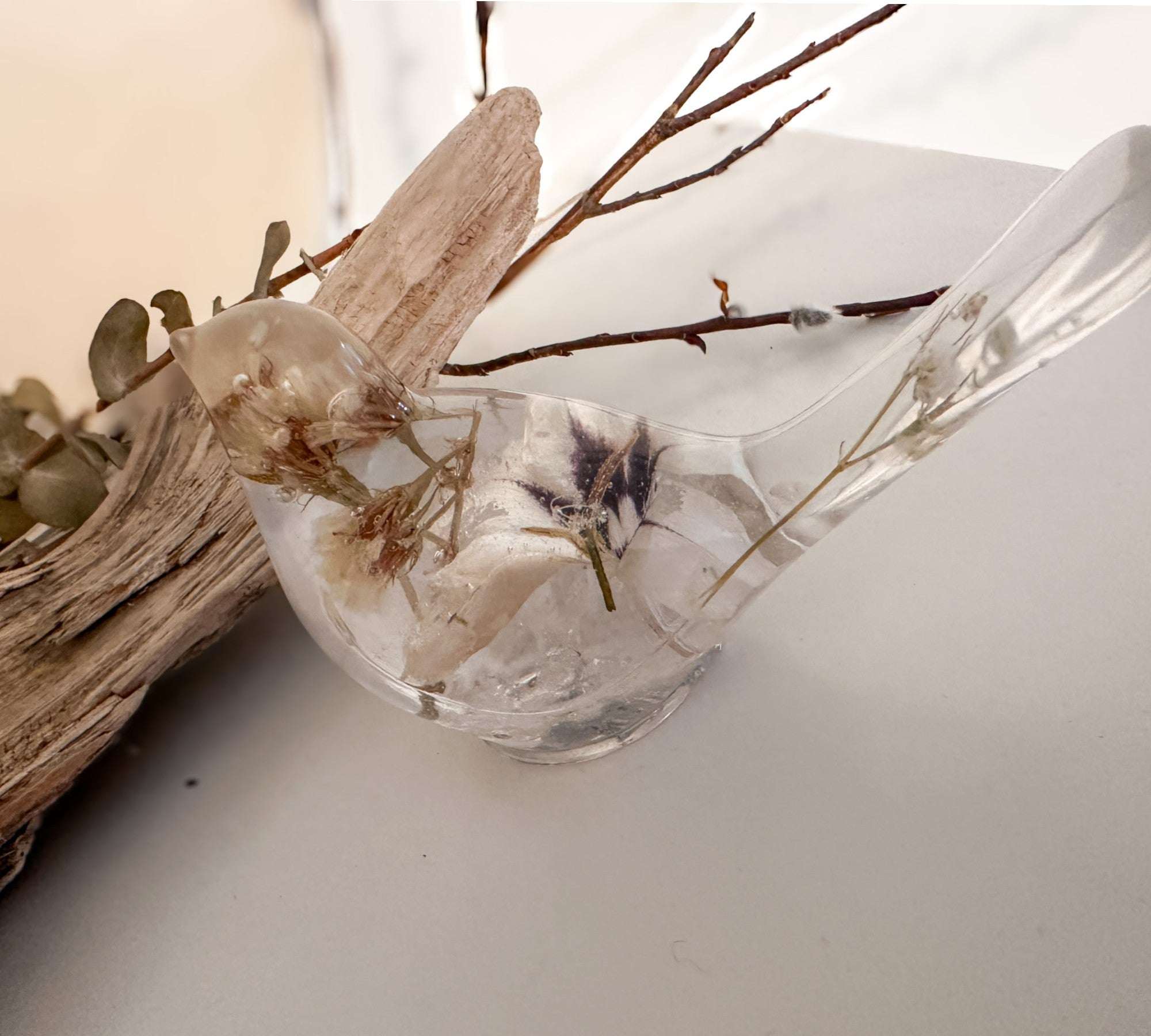 Starlit Peacock Orchid Songbird – Handmade Floral Resin Bird Decor
