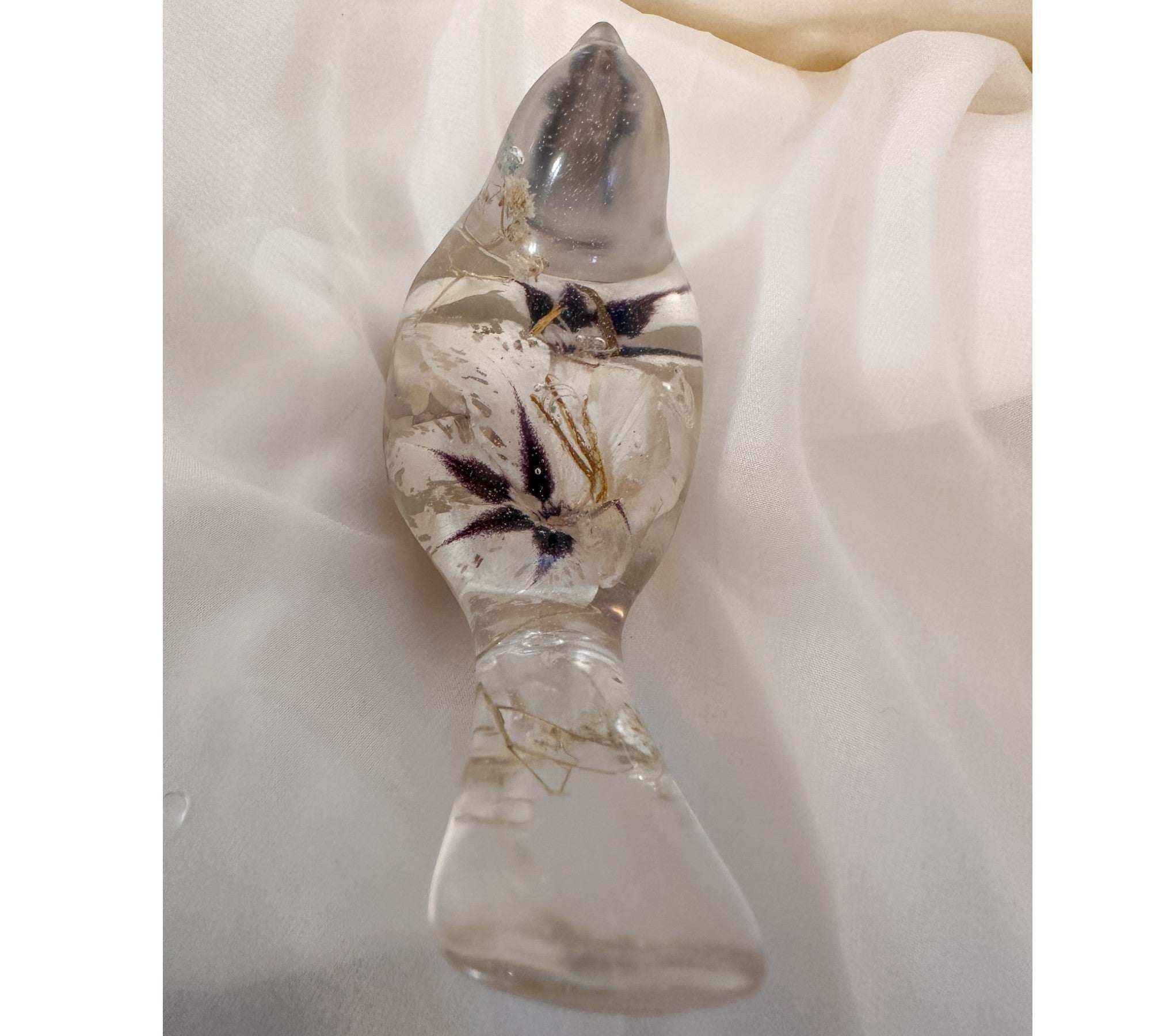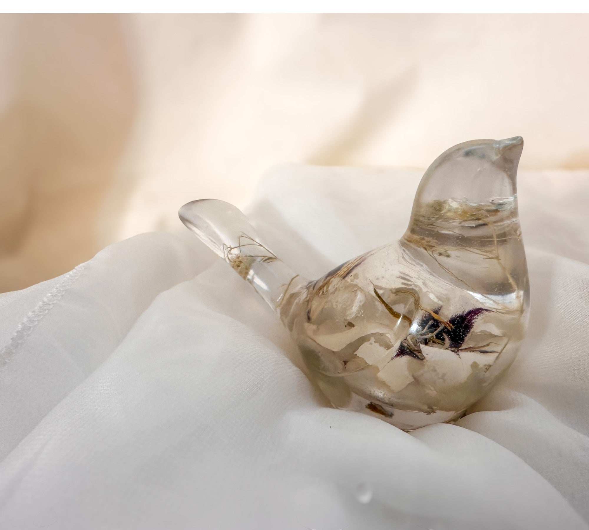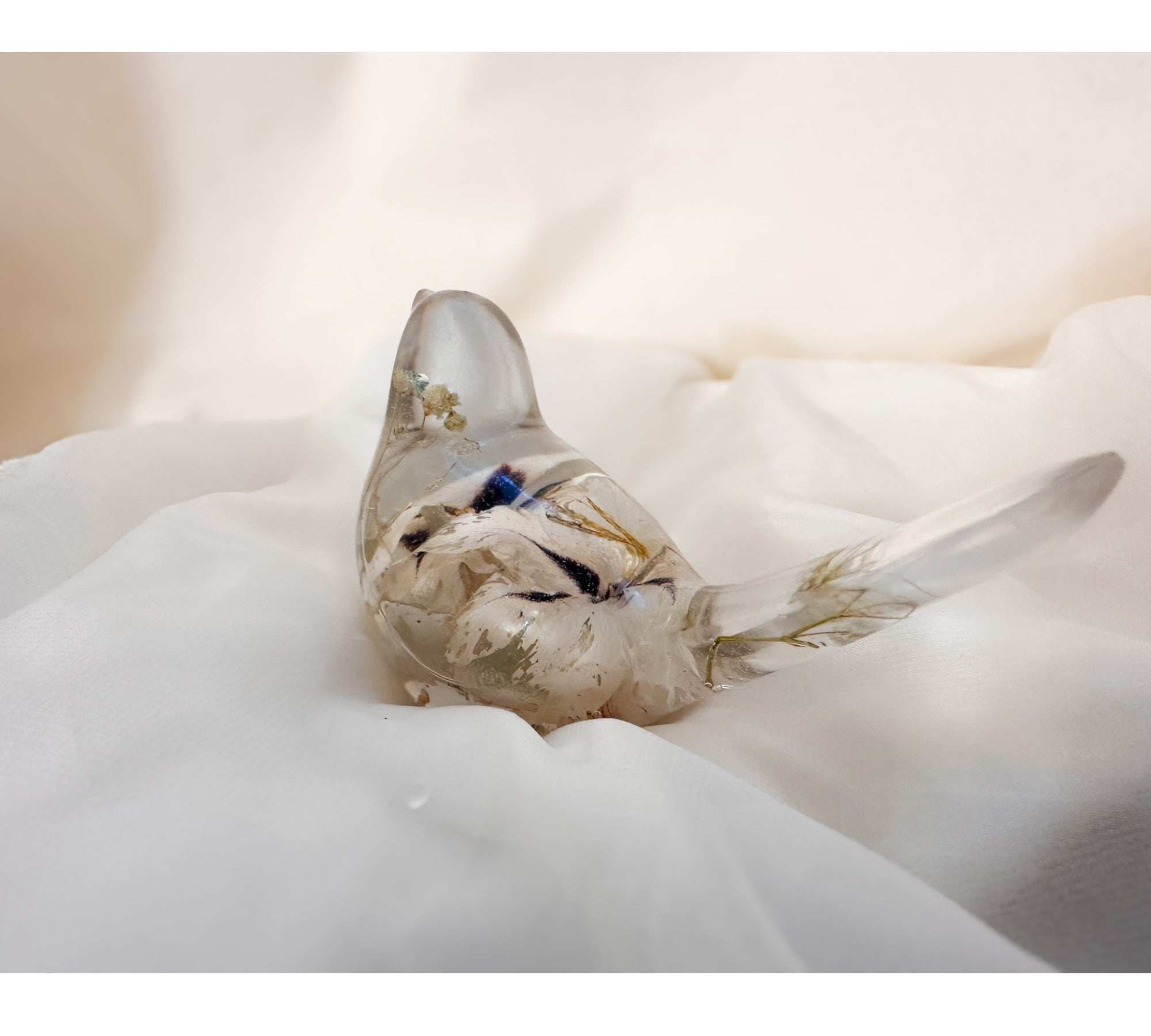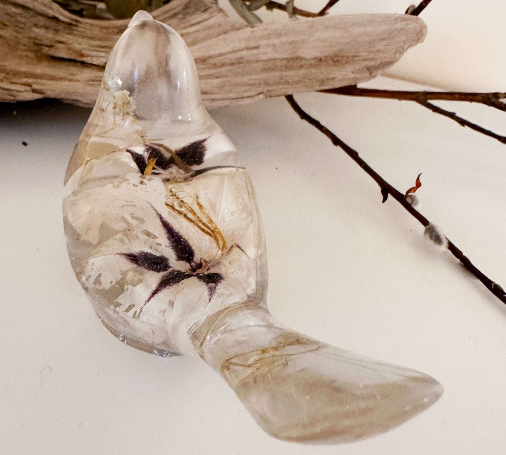 Starlit Peacock Orchid Songbird – Handmade Floral Resin Bird Decor