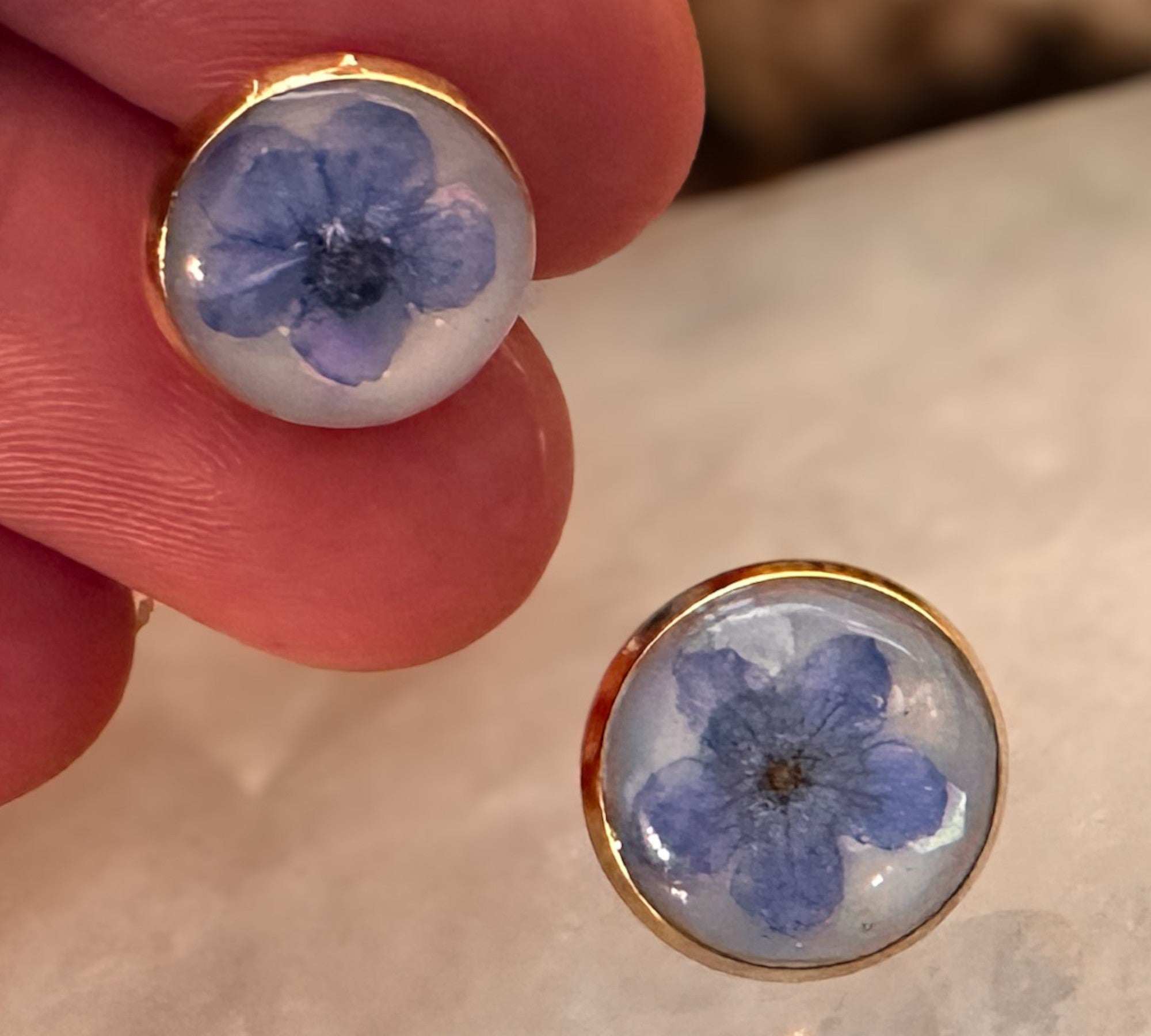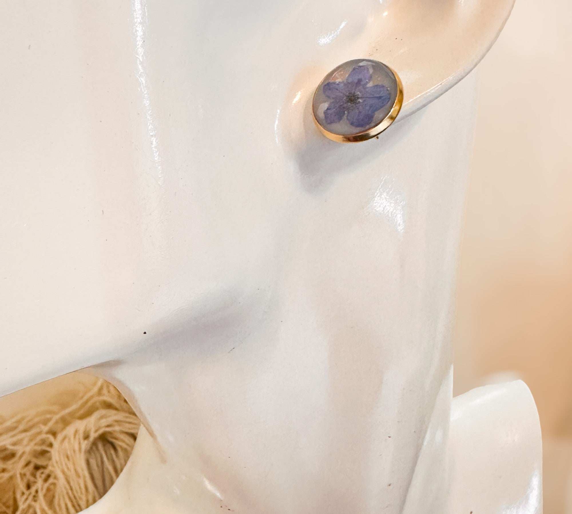 Whispering Forget-Me-Not Gold Studs - Handmade Floral Resin Earrings